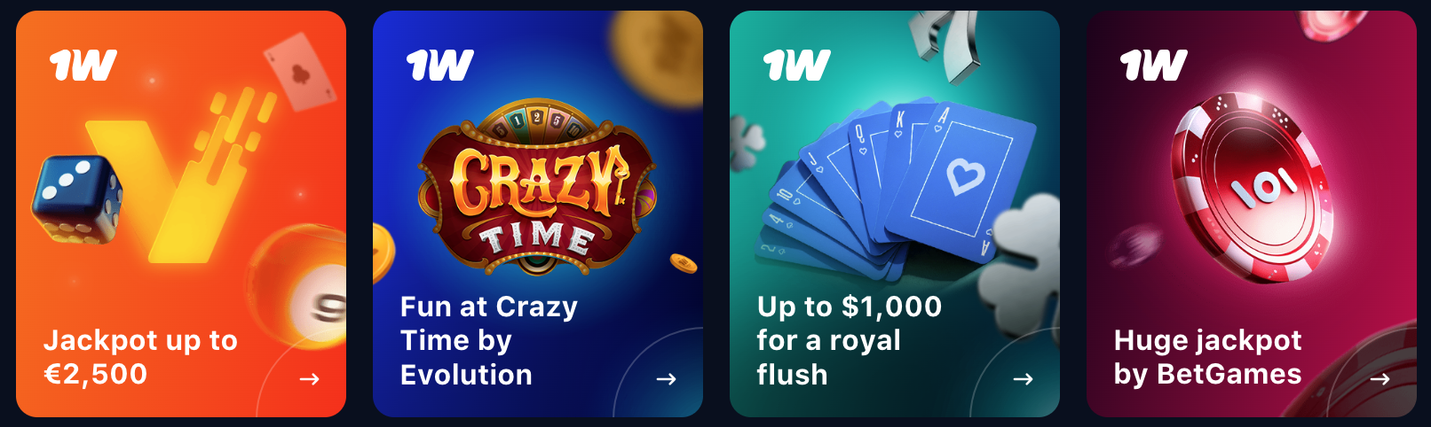 Herní platforma 1W se pyšní rozmanitou paletou bonusových akcí. Níže uvádíme souhrn nejběžnějších typů, na které můžete narazit: