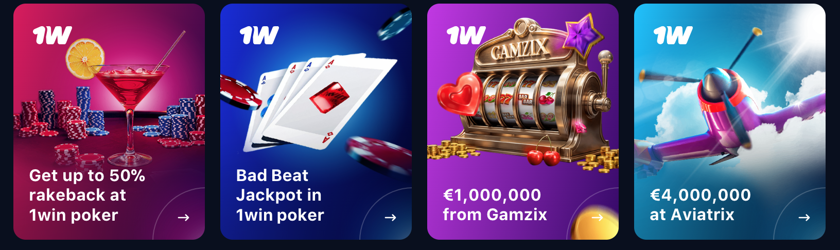 Oficiální web 1win: Pravidelně kontrolujte sekce "Promo akce" nebo "Bonusy".